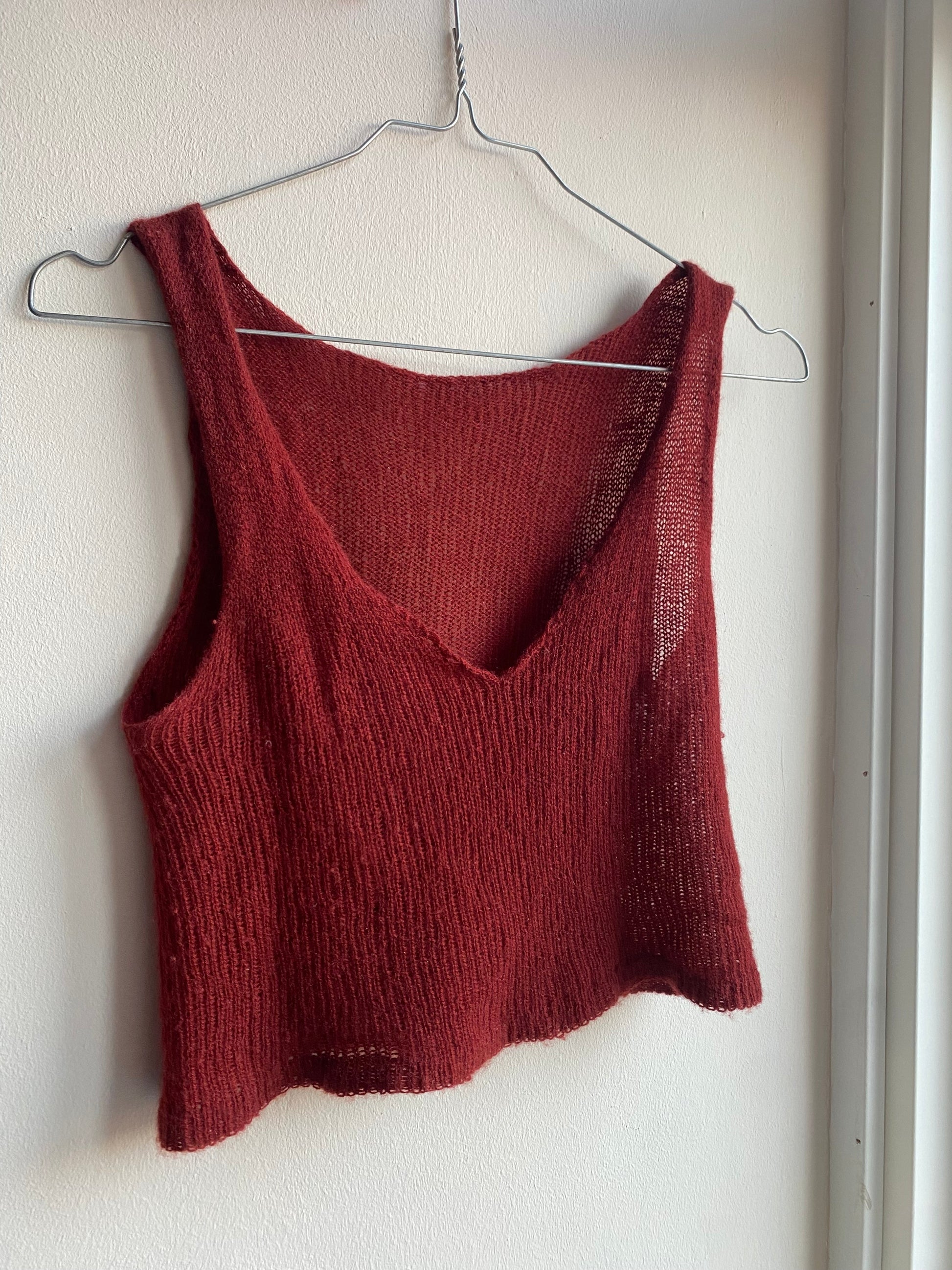 NB: The Anna Top is reversible. Wear it as a deep neckline or as an open back. Throughout the pattern we will be referring to the v-cut as the front-part of the top as it is the easiest way of measuring the fit while knitting.