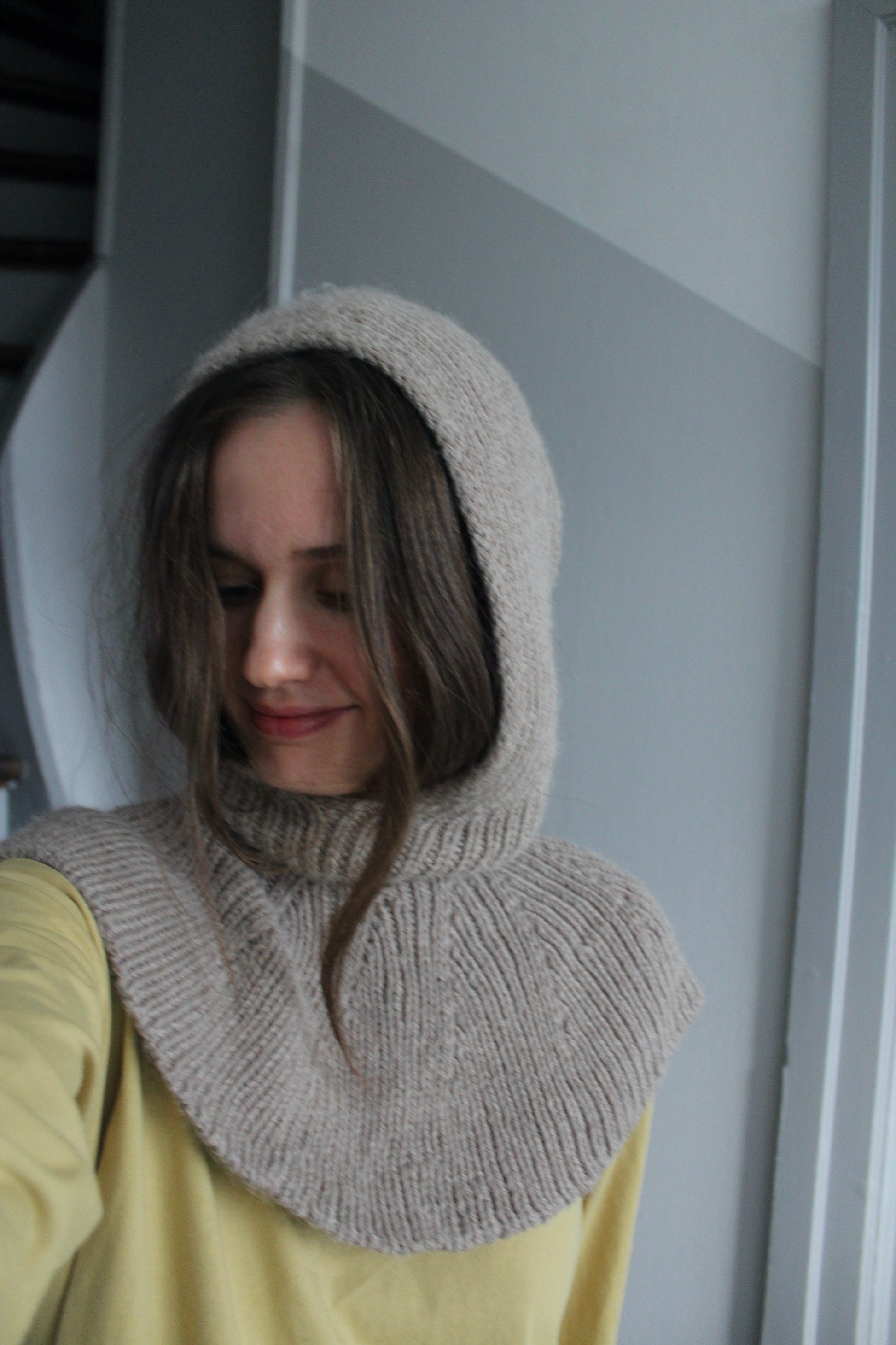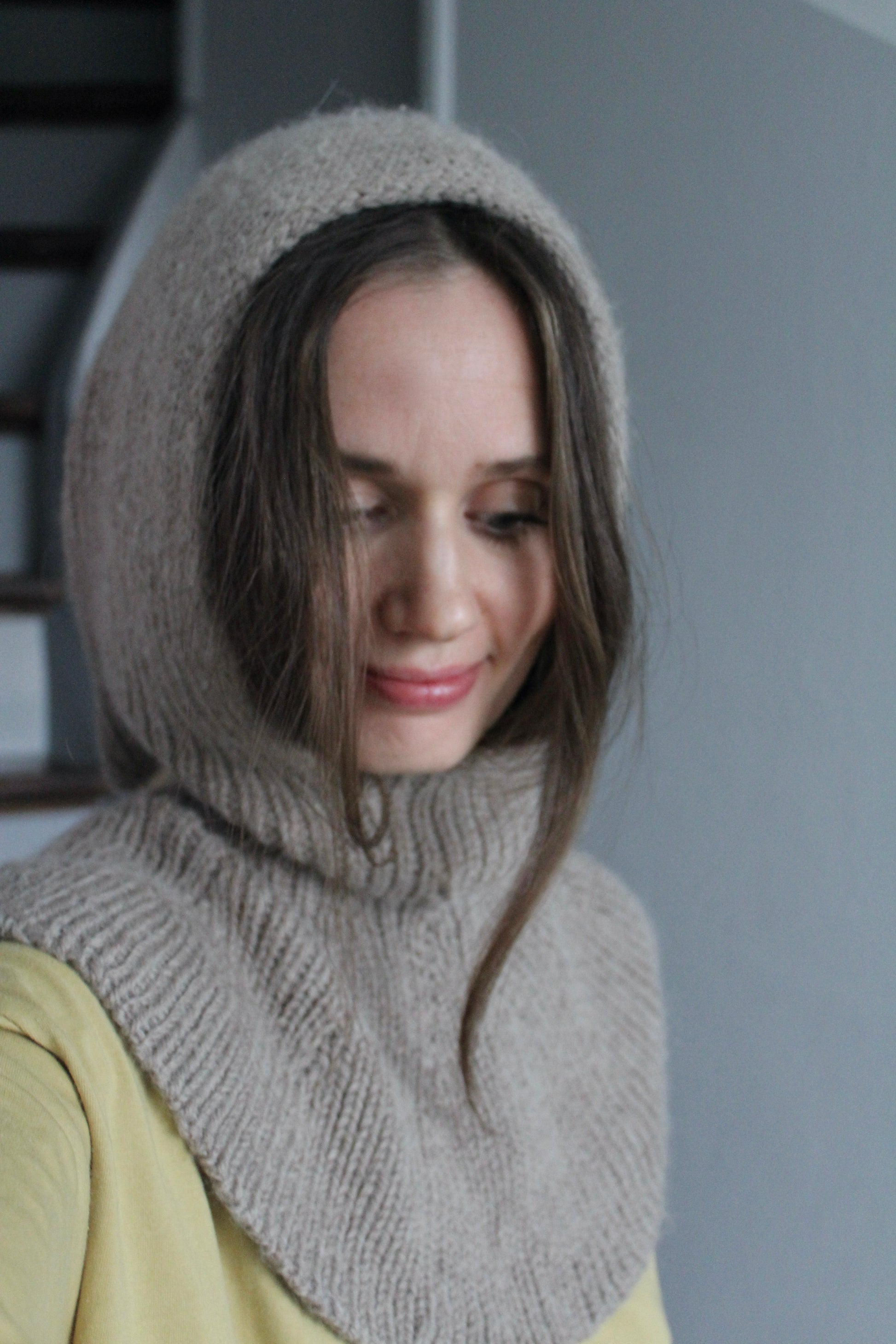 The Forest Hood is a knit pattern for a combined hood and poncho, making it practical, warm, and comfortable. It is knitted from the top of the head downward.