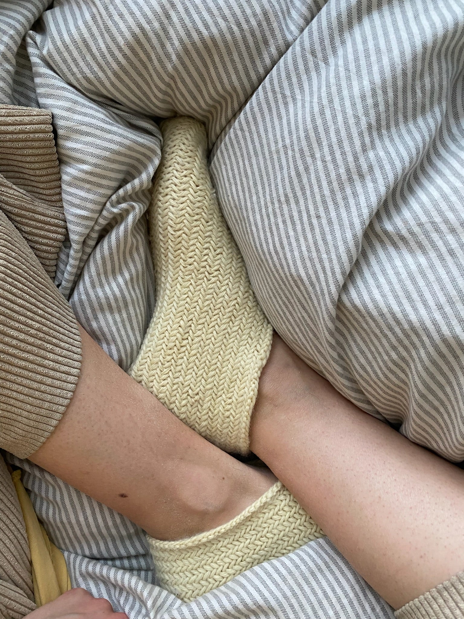 Unlike the reed shoes, however, The Siv slippers are knitted from thick, warm yarn. But just like reed shoes, The Siv Slippers are created using a thick braided pattern to secure good hold and a noticeable insulating effect, as well as for the characteristic look.