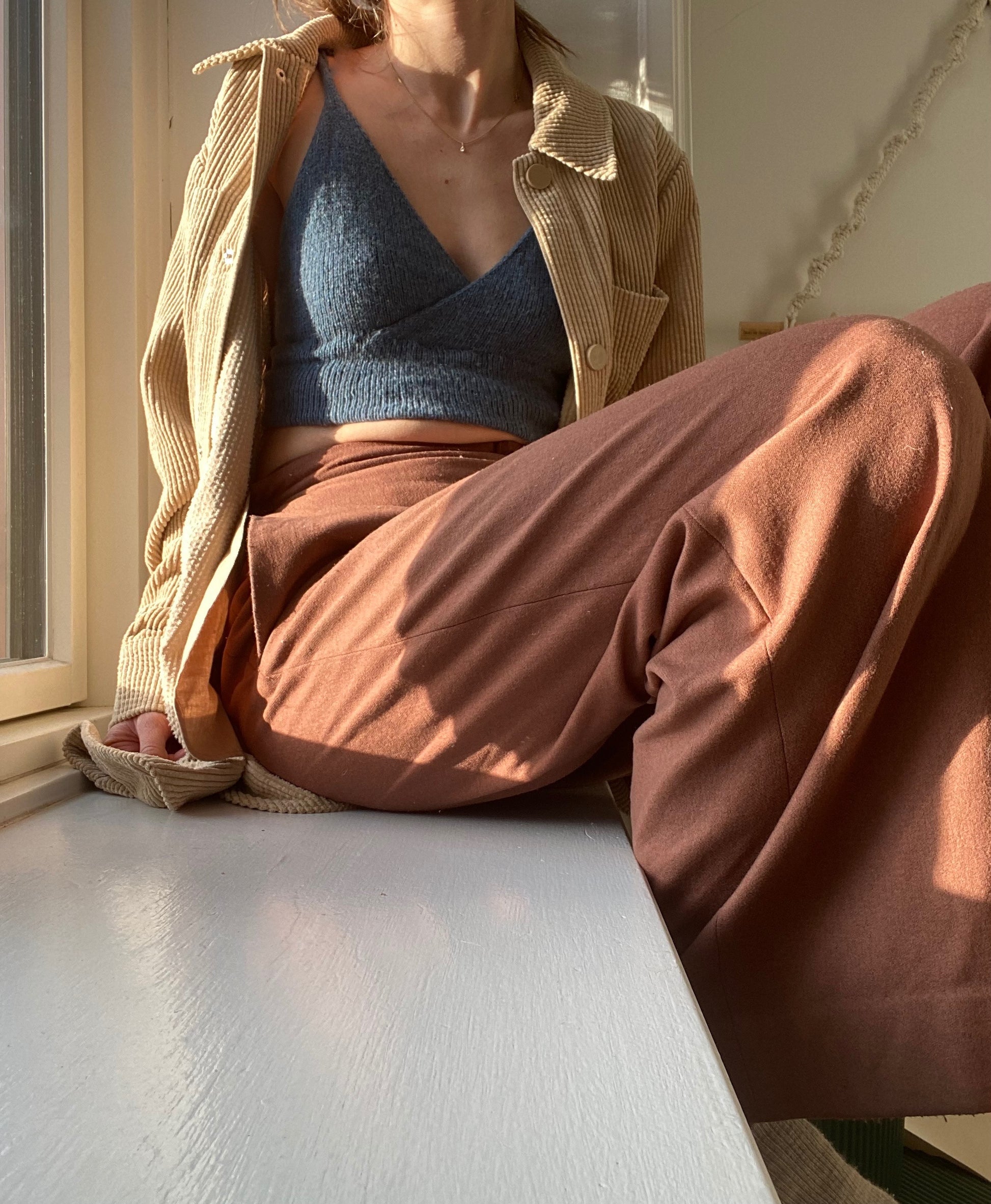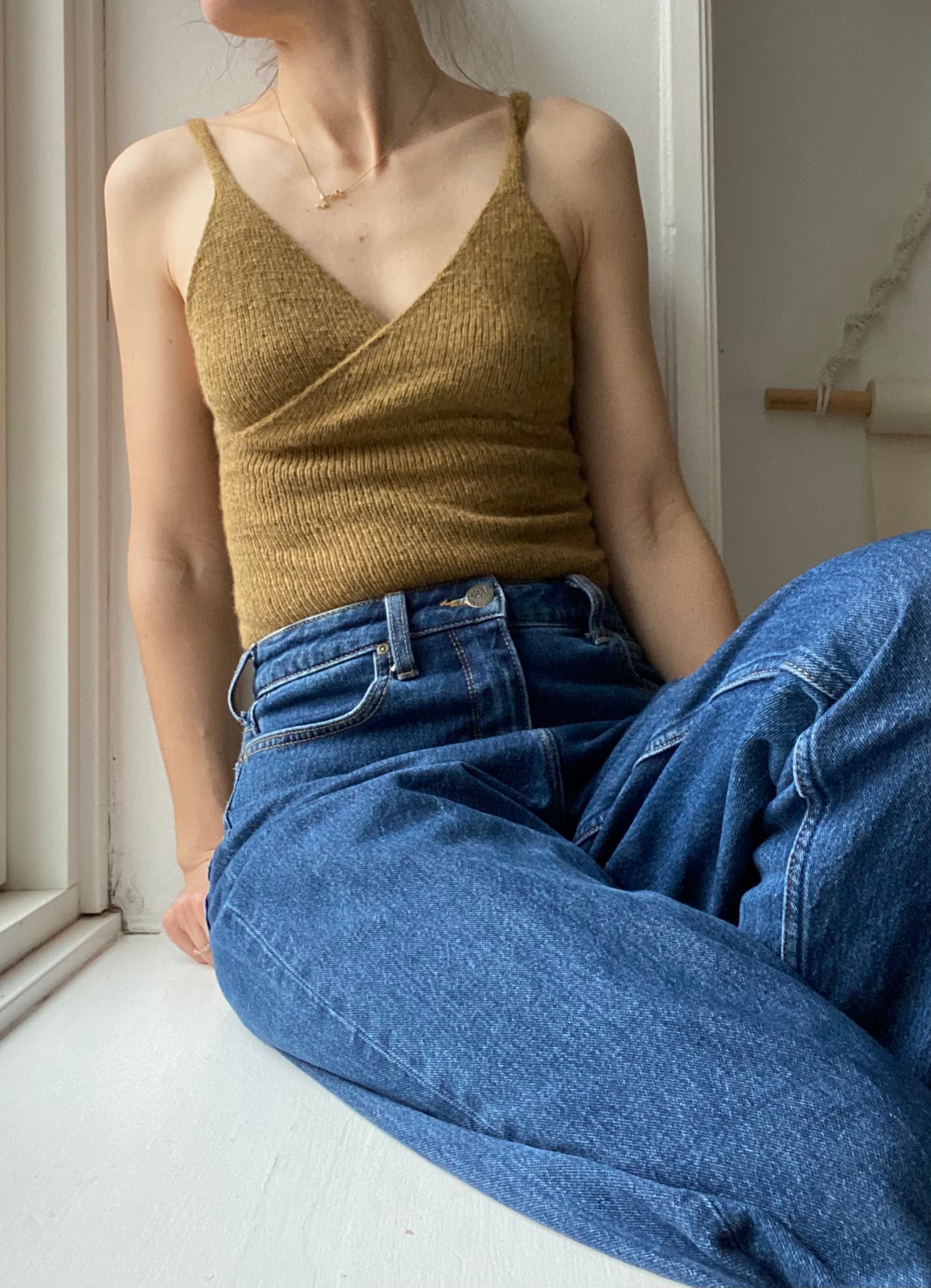 The Wrap is knitted from the top down and both cups and the body is knitted after your own measurements for enhanced comfort and fit. The top/bra is first knitted in two pieces, as the cups are knitted individually.